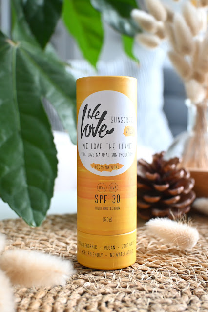 Essential (especially in summer): sun protection! I've tested a lot of them, but my favourite is the sun protection stick from We Love the Planet. The stick is hypoallergenic, vegan, water-repellent, made of 100% natural and environmentally friendly ingredients. Not only is the stick itself sustainable, but the cardboard tube (100% paper) is zero waste. As the stick does not contain water, it is suitable for travel and convenient to take everywhere.